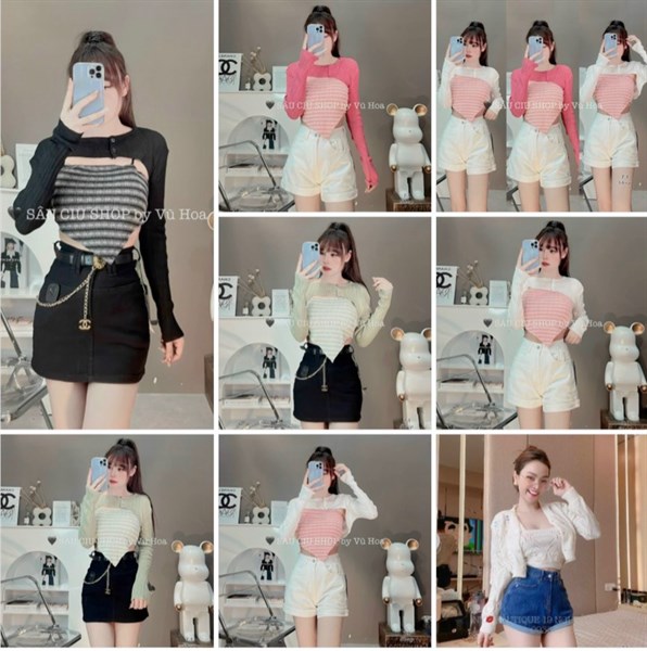 Set 2 món áo dài tay + áo 2s vạt chéo